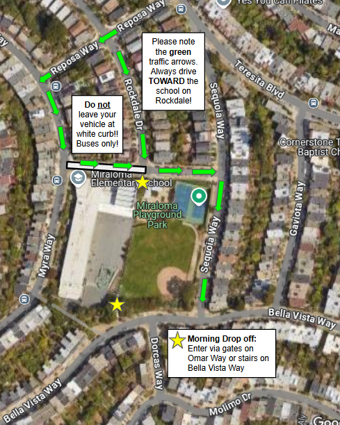 Please do not park along the white curb on Omar or block the buses in the morning or afternoon! The buses are on a tight schedule and need to come and go with our students quickly.